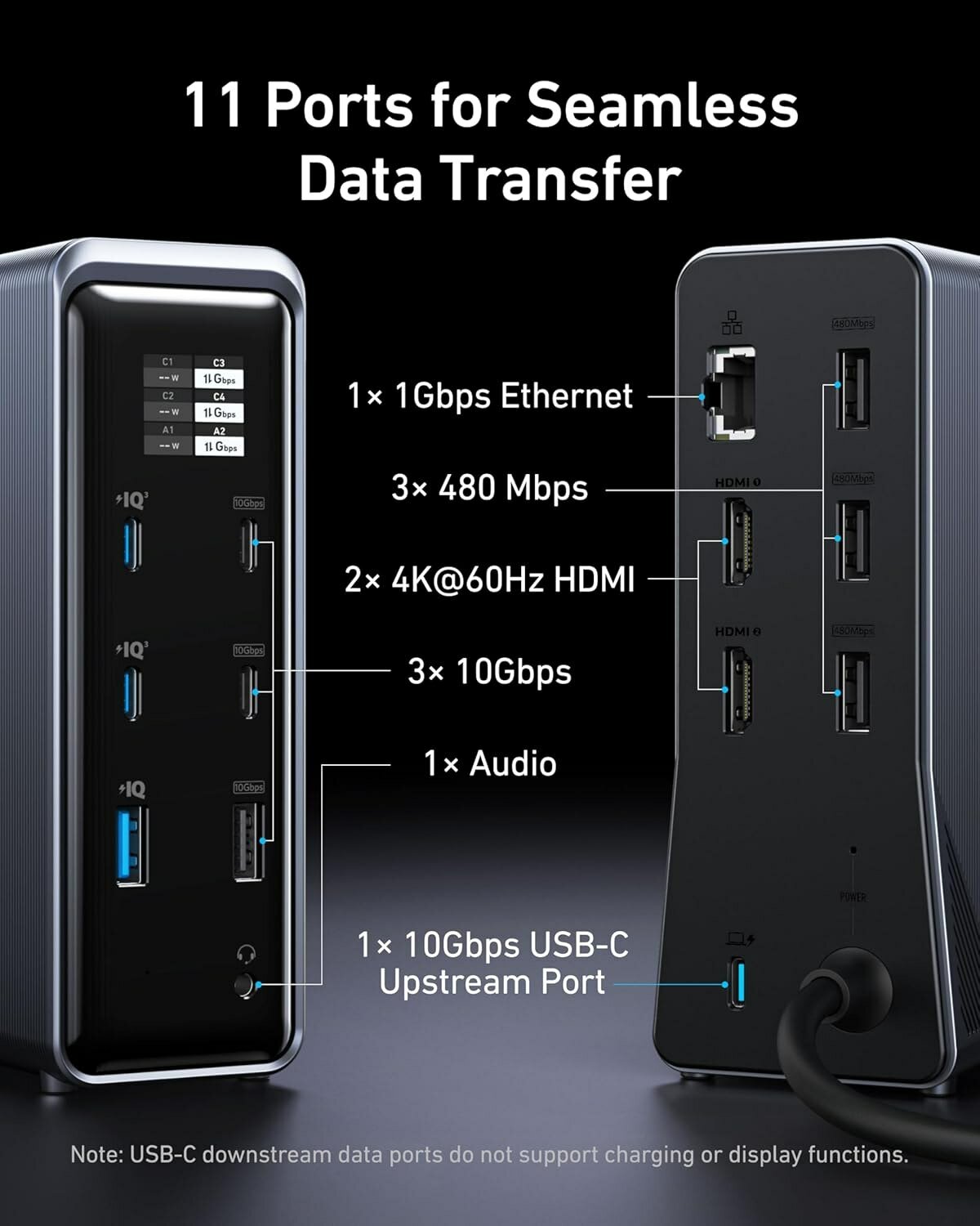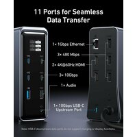 Док-станция Anker Prime, 14 портов, максимальная выходная мощность 160 Вт, быстрая передача данных 10 Гбит/с, интеллектуальный интерфейс (A83B6): сравнение цен, характеристики, фото, актуальное наличие и цены.