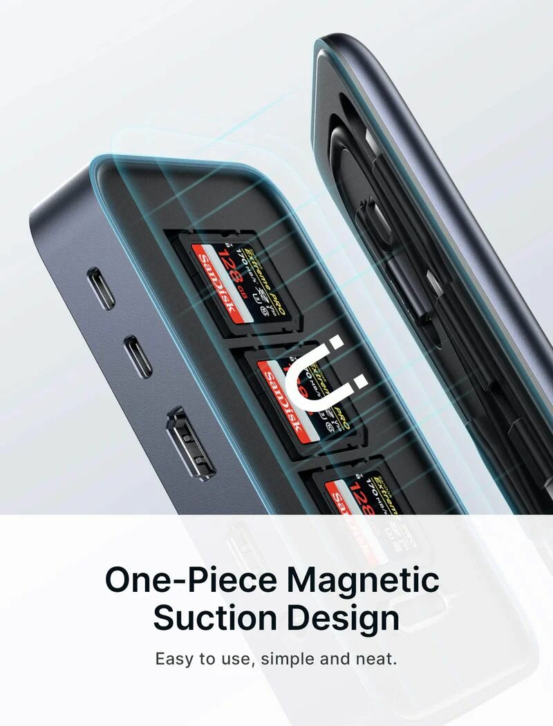 【Магнитная карт-плата USB-кабеля】 JSAUX представляет комплексную док-станцию с магнитным USB-хабом, включая кабель USB-C на USB-C 3.2, адаптер USB-C на USB micro-B, адаптер USB-C на USB-A, угловой адаптер USB-C, адаптер для зарядки iPhone, инструмент для извлечения SIM-карты, слоты для карт TF/SD и SIM/SD — док-станция JSAUX имеет все необходимое для подключения в дороге.