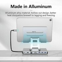 4. Прочная конструкция из алюминиевого сплава: эта подставка для ноутбука для док-станции, изготовленная из прочного алюминиевого сплава, гарантирует долговечность и эффективное рассеивание тепла. Премиальное качество сборки обеспечивает долгосрочную надежность, что делает его надежным спутником ваших устройств.