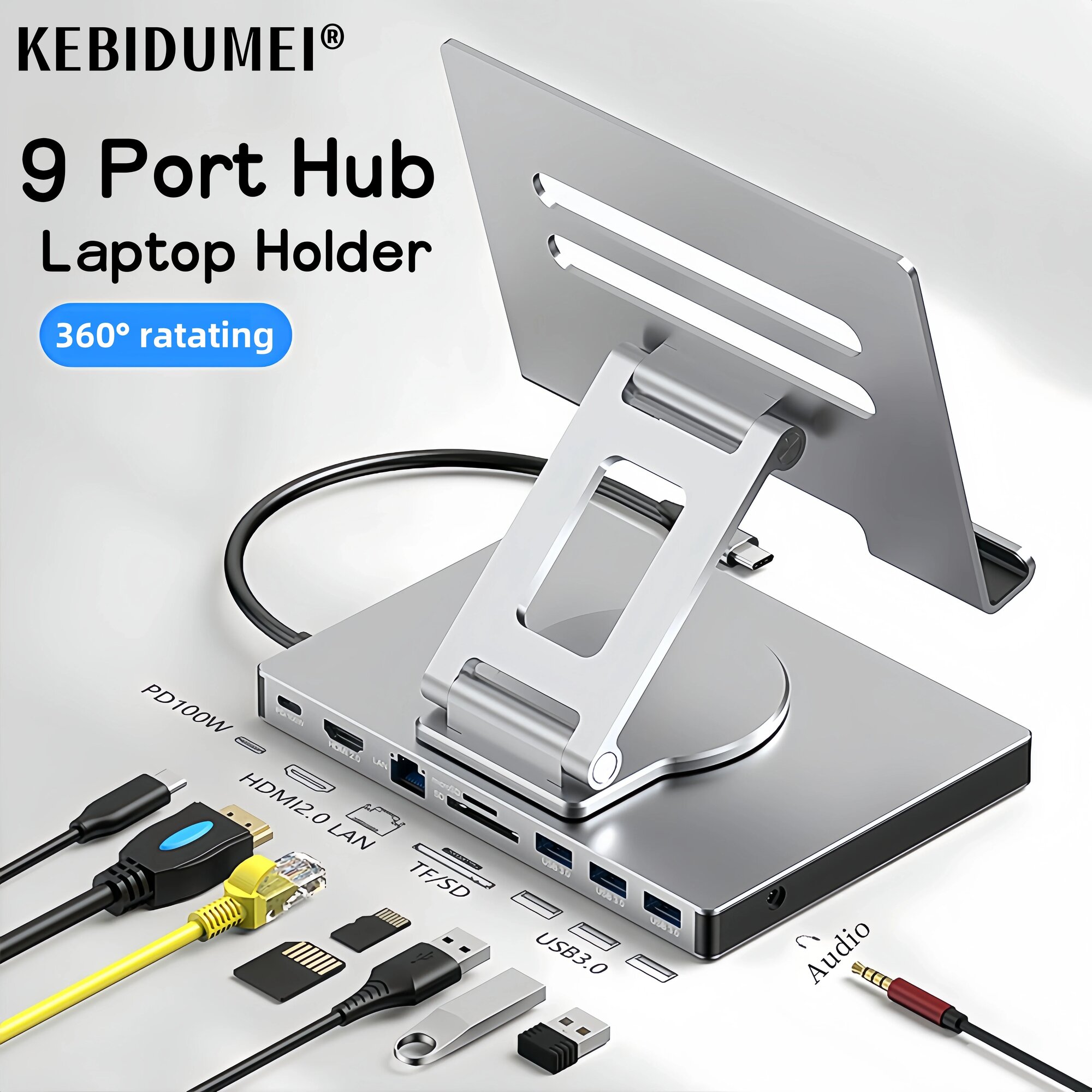Интерфейс 9-в-1: HD (4K60 Гц)/USB3.0*3/PD/SD/TF/гигабитная локальная сеть/аудиоинтерфейс