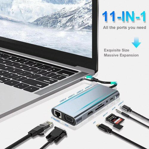 Купить Док-станция KS-is 11в1, картридер, USB-C, HDMI, VGA, Ethernet, SD, TF, сеть 1Гбит/с с доставкой по всей России.