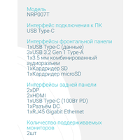 Док-станции (дополнительно)-Интерфейс подключения USB Type-C Док-станции (дополнительно)-Выходы DisplayPort Док-станции (дополнительно)-Конфигурация выходов 1xUSB-C, 2xHDMI 4K 60Hz, 2xDP 4K 60Hz, 3xUSB-A 3.2, 1xTF/microSD, 1xSD/MMC, 1x3.5mm audio, 1xRJ45 Док-станции (дополнительно)-Блок питания в комплекте Да Док-станции (дополнительно)-Мощность блока питания в комплекте 100