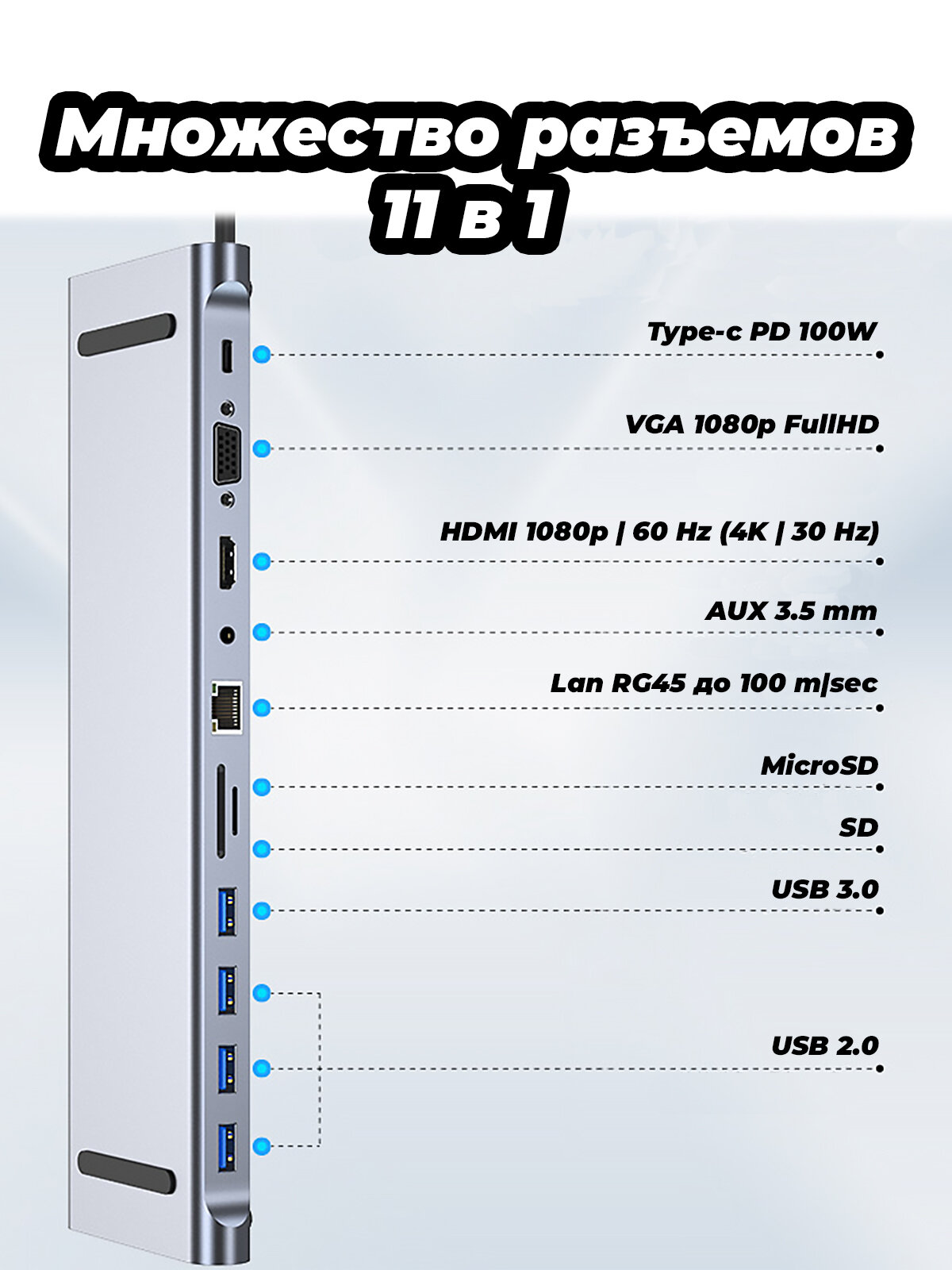 Купить Док станция Type-c 11 в 1 с портами HDMI, VGA, USB 2.0 и 3.0, AUX 3.5, RJ45, SD, TF и MicroSD для ноутбука и планшета с доставкой по всей России. Док станция Type-c 11 в 1 с портами HDMI, VGA, USB 2.0 и 3.0, AUX 3.5, RJ45, SD, TF и MicroSD для ноутбука и планшета: сравнение цен, характеристики, фото, актуальное наличие и цены.