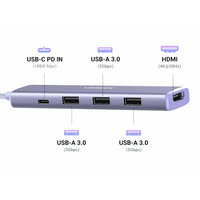 Док-станция/ USB-хаб UGREEN CM478 USB Type-C 3xUSB 3.0 Type-A USB Type-C HDMI 100Вт Фиолетовый 35582 35582