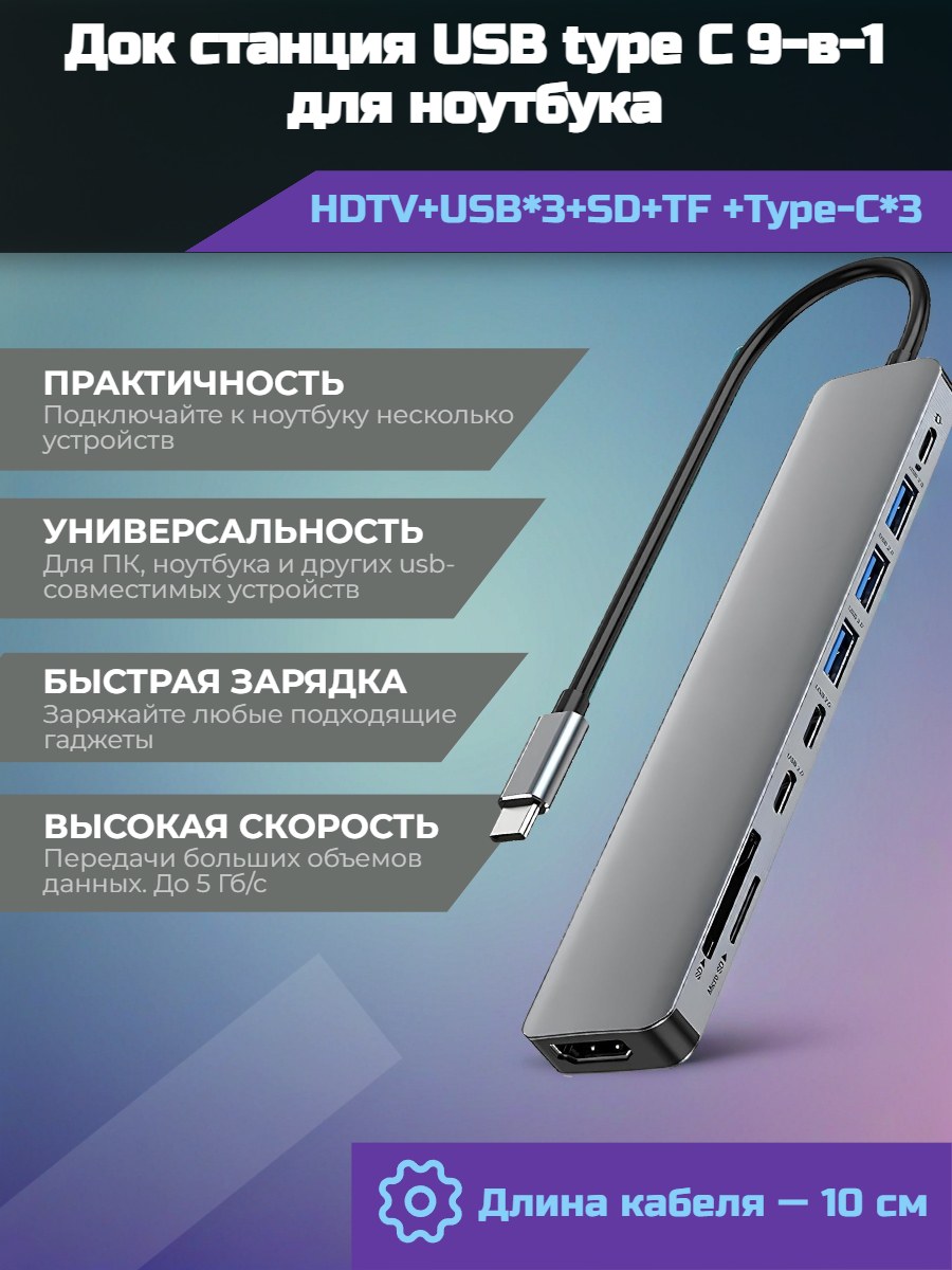 Купить Док станция USB type C 9-в-1 для ноутбука (порт репликатор, концентратор) с доставкой по всей России.