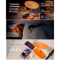 Основным отличием от аналогичных устройств является наличие функции ночника, регулировки яркости освещения и таймера отключения освещения. При кратком нажатии на кнопку ночника - включается свет, при повторных кратких нажатиях меняется яркость освещения, при удержании кнопки активируется таймер выключения - последовательно 15/30/45/60 мин. Соответствующее время выключения подсвечивается индикацией, также имеется индикация беспроводной зарядки.