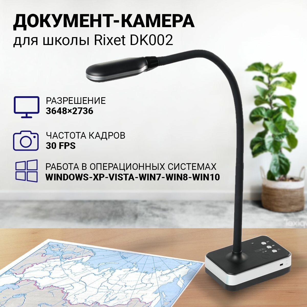 Документ-камера Rixet DK002 подключается к любым устройствам, поддерживающим USB, а также совместимо с приложениями для проведения онлайн уроков и лекций, такими как Skype, ZOOM, YouTube.