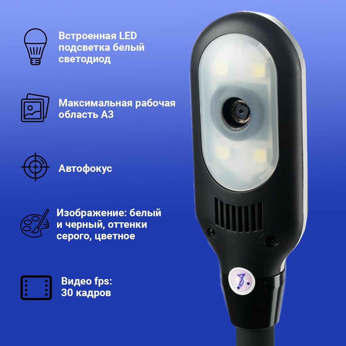 - Дизайн: Компактный гибкий дизайн, голова камеры может вращаться (“гусиная шея”)