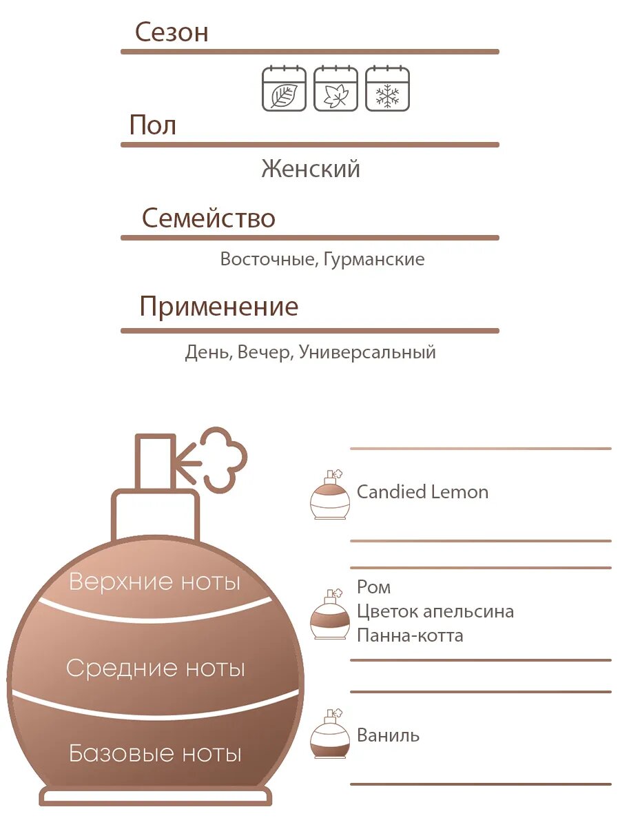Аромат Dolce&Gabbana Devotion обладает очень ярким и красивым звучанием. В его композиции присутствуют ноты рома, цветка апельсина и ванили. Верхние ноты представлены сладким лимонным цукатом, средние ноты - цветком апельсина, панна-коттой и ромом, а базовые ноты - ванилью.