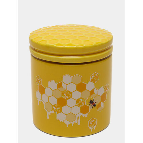 Керамическая банка из коллекции "Honey". Банка представлена в виде стакана с крышкой. Покрыта желтой глазурью с объемным изображением сот. Подходит для хранения всевозможных сыпучих продуктов: круп, макарон, сахара, приправ, чая, кофе и других. Поможет поддержать порядок и станет украшением кухонного интерьера. Своим оригинальным, стильным дизайном и практичностью такой предмет посуды не оставит равнодушной ни одну хозяйку. Объем 480 мл. Упакована в подарочную картонную коробку.