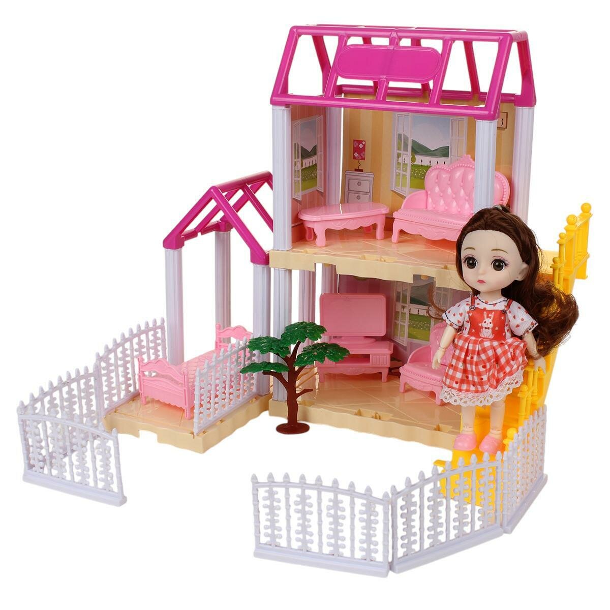 Дом для кукол со светящимися люстрами и мебелью, 2 этажа, розово-белый дизайн, 25х35х44 см, пластик, картон: сравнение цен, характеристики, фото, актуальное наличие и цены.