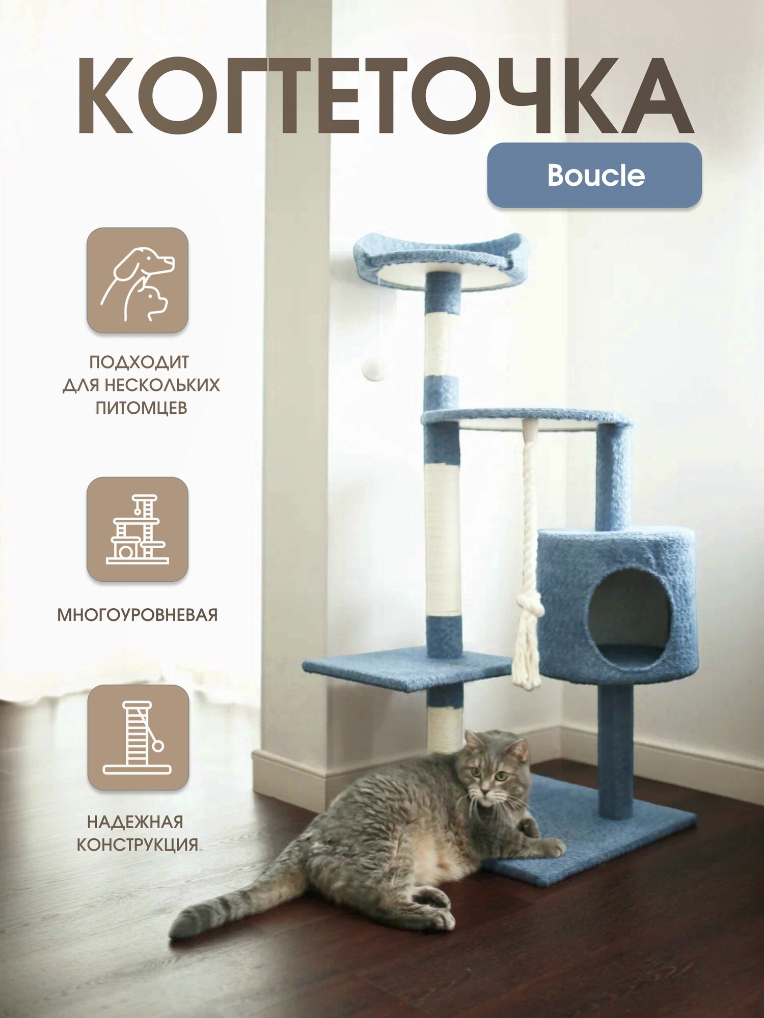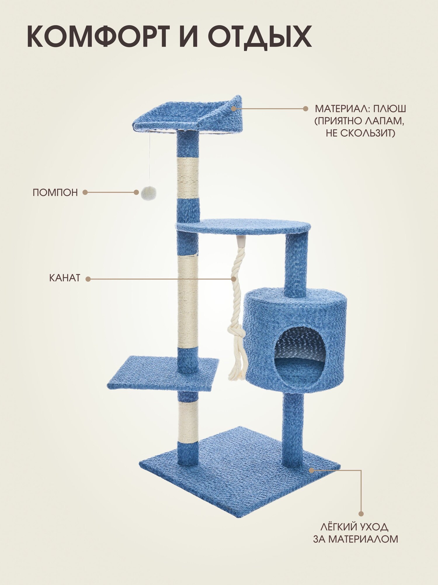 Дом-когтеточка для кошек, котов «Не Один Дома» Boucle, 45х45х112 см, синий: сравнение цен, характеристики, фото, актуальное наличие и цены.