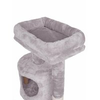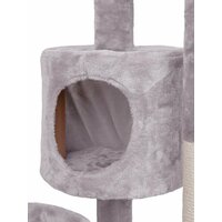 Игровой комплекс для котят и некрупных кошек с тремя спальными местами. Домик-когтеточка предназначен для одного или двух питомцев. Домик устойчивый, что позволяет избежать опрокидывания. Столбик обтянут натуральным джутом. Дом-когтеточку рекомендуется очищать от шерсти специальной щеткой или влажной салфеткой. Ткань изделия очень мягкая, устойчива к когтям животных. Лежанки домика идеально подойдут для кошек до 5-6 кг. Диаметр нижней лежанки - 32 см, верхняя когтеточка-лежанка прямоугольная - 43х32 см, основание домика - 60х38 см, высота собранного домика - 90 см.
