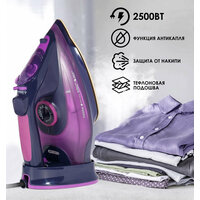 Домашний утюг беспроводной, с функцией вертикальной глажки, паровой удар, антипригарное покрытие, система самоочистки,2400Вт, фиолетовый: сравнение цен, характеристики, фото, актуальное наличие и цены.