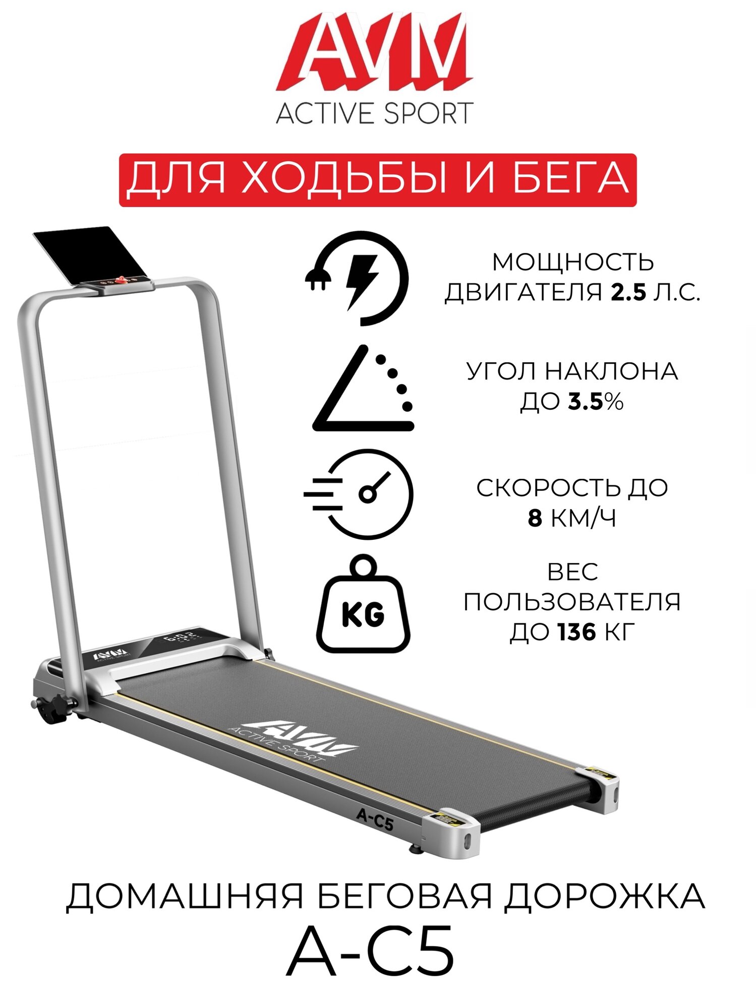 Купить Домашняя беговая дорожка AVM A-C5 / Серебристая с желтым / С регулировкой угла наклона / С поручнем / До 136 кг с доставкой по всей России.