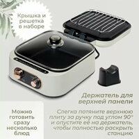 Домашняя кулинарная станция 7 в 1 - гриль, духовка, сотейник, пароварка, сковородка, кастрюля, фритюрница. Готовьте разнообразные блюда, не прибегая к использованию множества различных кухонных приборов. В ней можно жарить как с маслом, так и без него, готовить на гриле, использовать паровую функцию, тушить или варить. Все эти варианты доступны в одном универсальном приборе, который обеспечит вам широкий спектр возможностей приготовления пищи. Прибор оснащен индикаторами, которые показывают нагревание поверхностей. У каждой из панелей свой независимый регулятор температуры. Когда прибор достигает необходимой температуры нагрева, индикатор отключается. Во время работы прибора индикатор циклически загорается и гаснет, что означает, что прибор поддерживает необходимую температуру. В комплекте предоставляется стеклянная крышка, специальная решётка для приготовления блюд на пару.