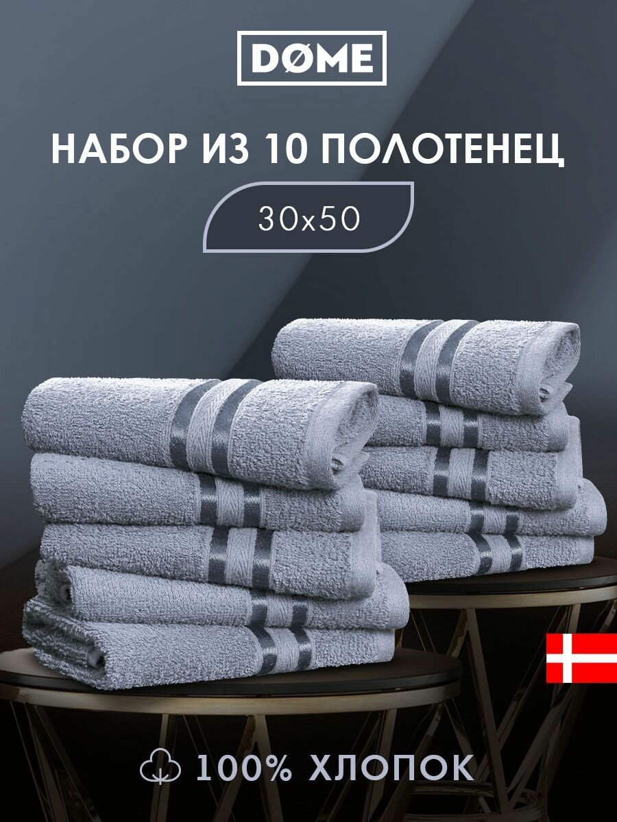 DOME «Гармоника» Комплект махровых полотенец, 30х50 хлопок, цвет серо-голубой, 440 гр/м2, 10-пр: сравнение цен, характеристики, фото, актуальное наличие и цены.