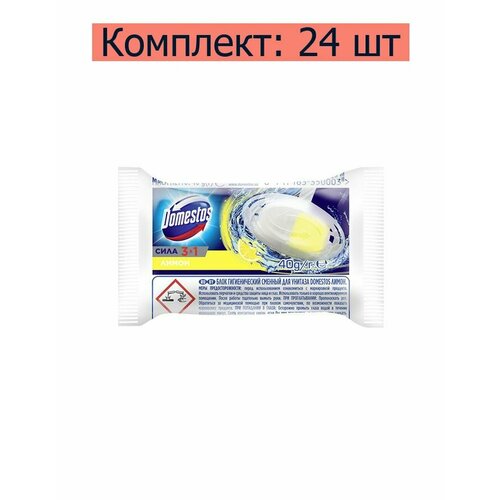 В комплекте 24 гигиенических блока Domestos, каждый из которых весит 40 грамм.