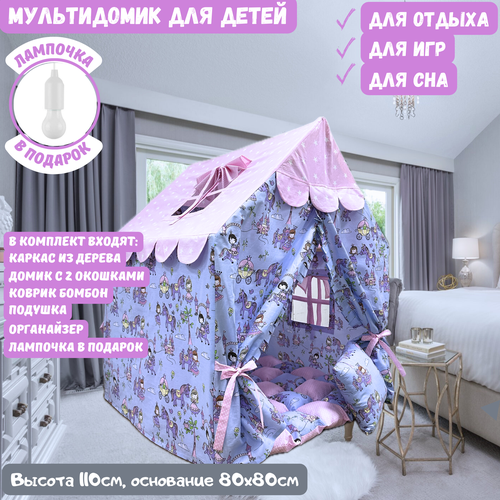 домик для детей, каркас из дерева, коврик бомбон, подушка, конфирматы,ключ, органайзер, лампочка в подарок