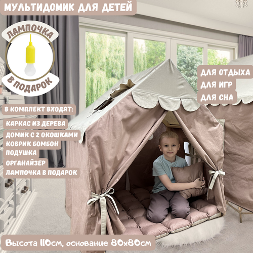 домик для детей, каркас из дерева, коврик бомбон, подушка, конфирматы,ключ, органайзер, лампочка в подарок