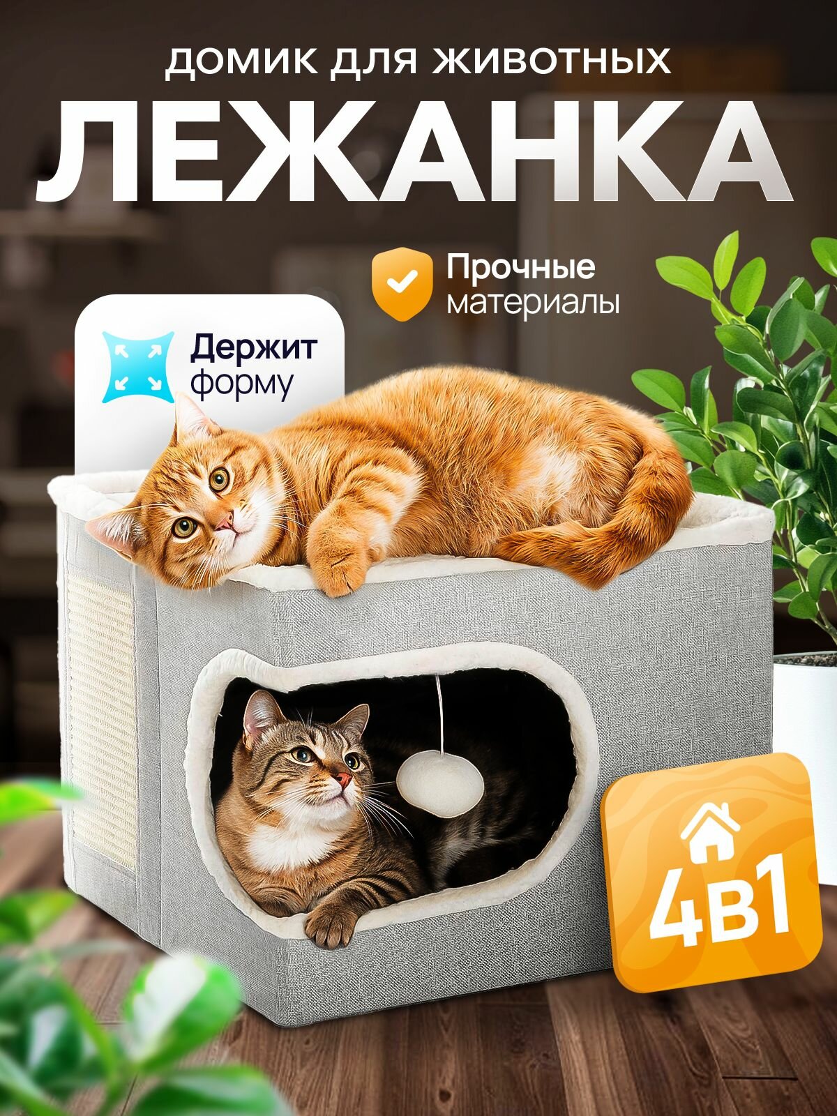 Домик для кошек с когтеточкой и игрушкой, серый, 45х45х34 см: сравнение цен, характеристики, фото, актуальное наличие и цены.