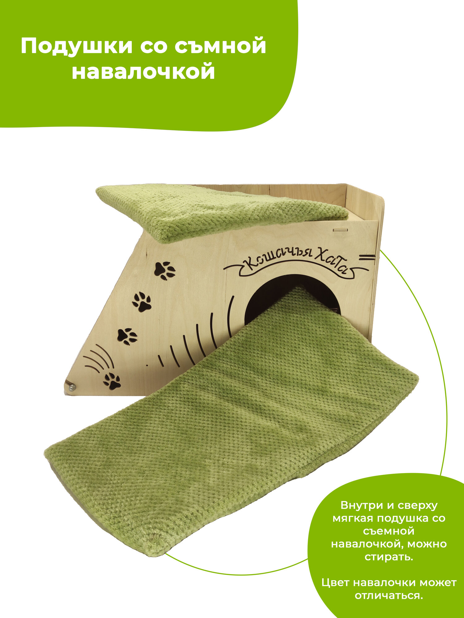 Домик для кошки деревянный разборный с когтеточкой и мягкой лежанкой