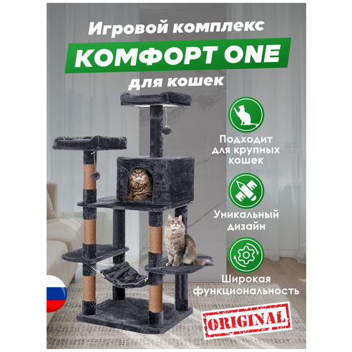 Лимитированный выпуск Домик для кошки с когтеточкой и с большой лежанкой "Комфорт One": количество моделей ограниченно! - Размеры игрового комплекса для кошек(ДхГхВ): 96х50х163 см -Большое количество мест для игр: Уютный гамак, шар и когтеточки-столбики сизалевым канатом, который намного прочнее, чем дешевый джутовый. -Кошка может играть и перемешаться по домику разными способами. -Большой домик для крупных пород кошек и в то же время будет очень интересным для котенка - Вместительный: комплекс имеет множество мест для лежания, на самом верху лежак с мягкими бортиками, чтобы коту было комфортно лежать и не падать - Крепкий и устойчивый, сбалансированная конструкция. Когтеточка с домиком для кошки состоит: премиальный мех 1-го сорта, который очень мягкий и приятный. - Комплекс гармонично впишется в любой интерьер дома, как часть мебели. - Он спроектирован так что его легко можно собрать как Лего. Уникальная гарантия домика!