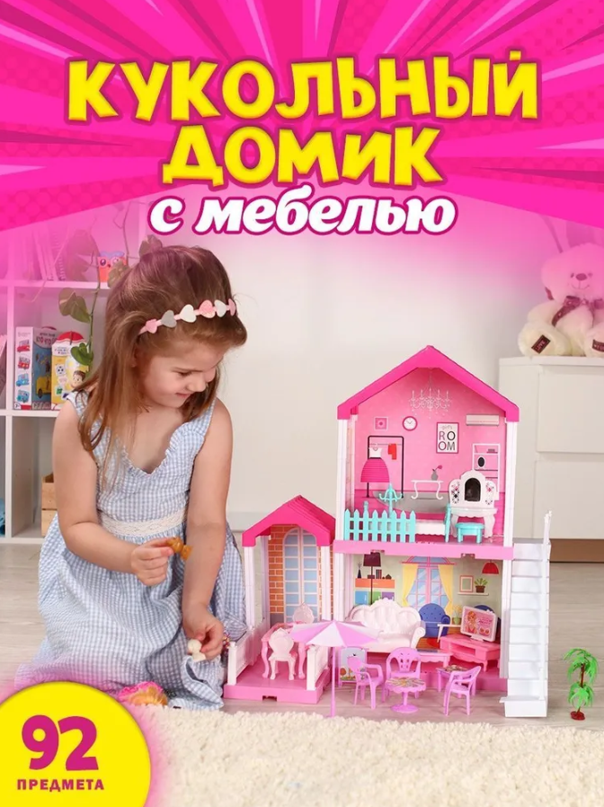 Домик для кукол «Вилла» 41.5х40х52 см, 92 предмета (мебель, кукла, в коробке): сравнение цен, характеристики, фото, актуальное наличие и цены.