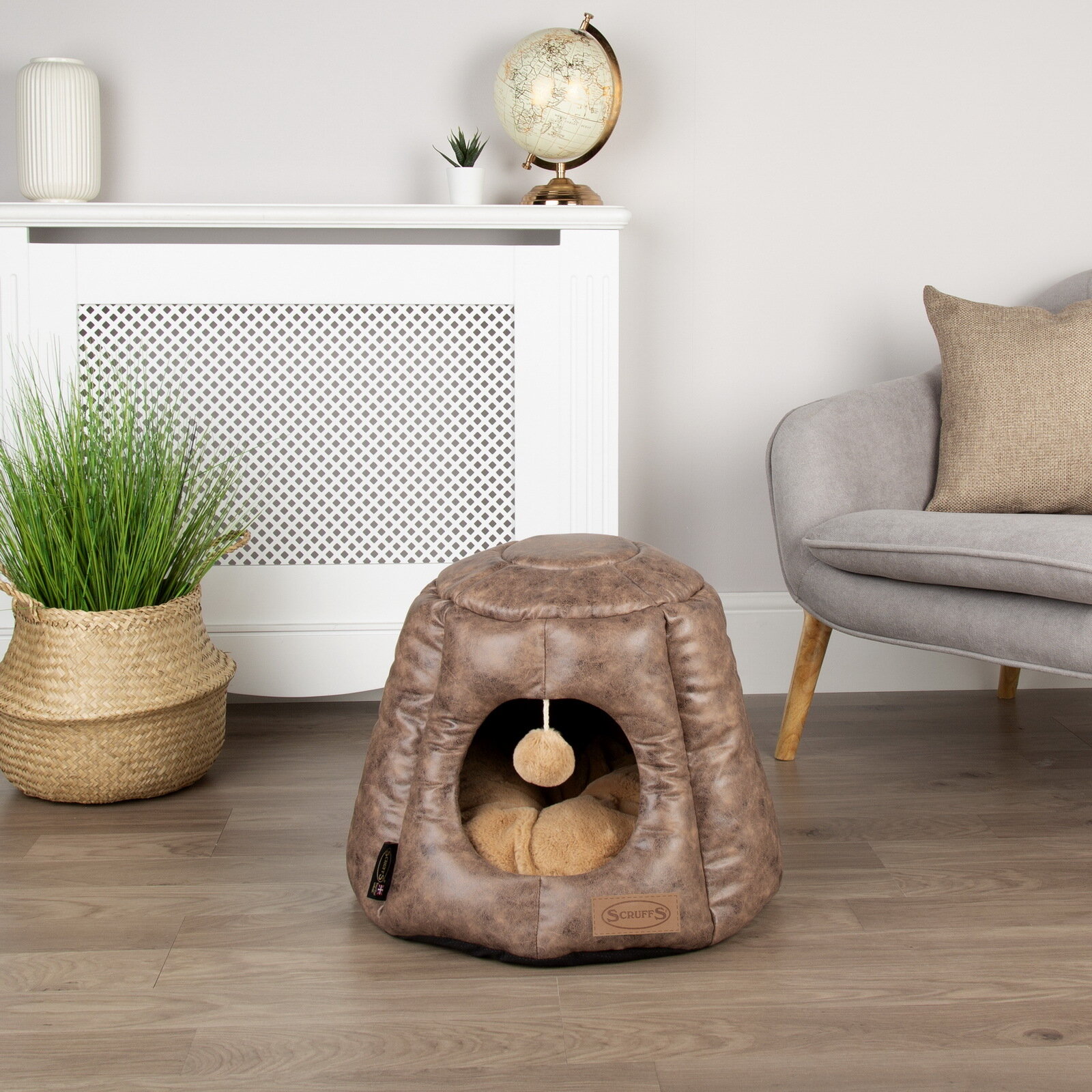 Купить Лежак — домик для кошек SCRUFFS «Knightsbridge Cat Igloo», экокожа, шоколадный, 48x48x38см (Великобритания) с доставкой по всей России.