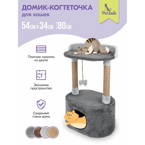 Домик-когтеточка брейн «PetTails» разборный, овальный, 34х54хh80см (мех, джут) тёмно-серый: сравнение цен, характеристики, фото, актуальное наличие и цены.