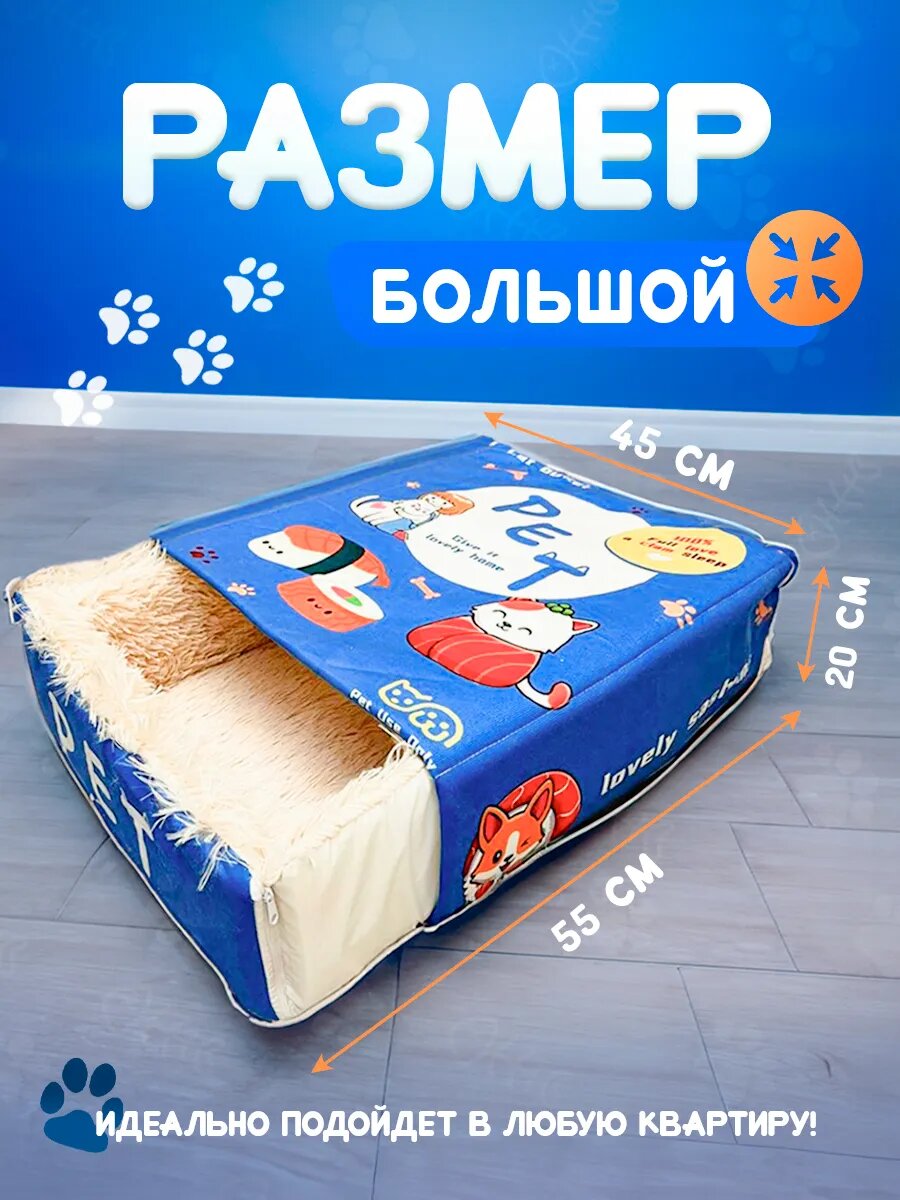 Купить Домик-лежанка «Большая коробка Суши» ProPets, для кошек, искусственный мех, синий с доставкой по всей России.