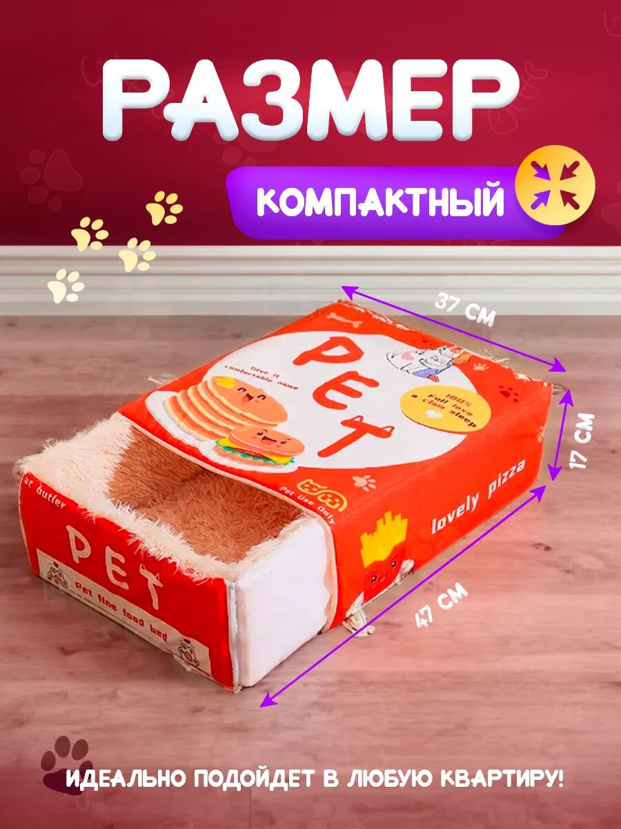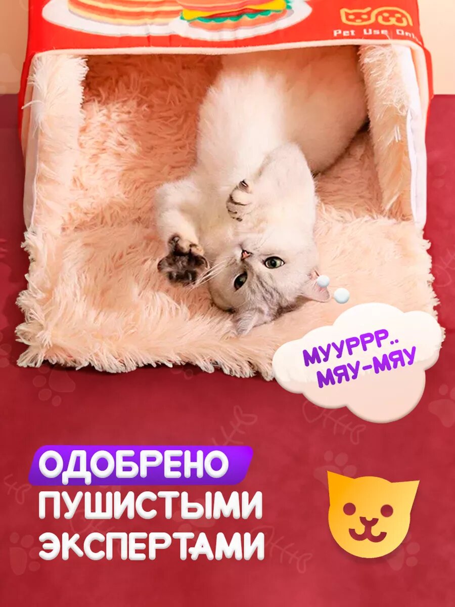 Купить Домик-лежанка «Коробка Бургер» ProPets, для кошек, искусственный мех, красный с доставкой по всей России.