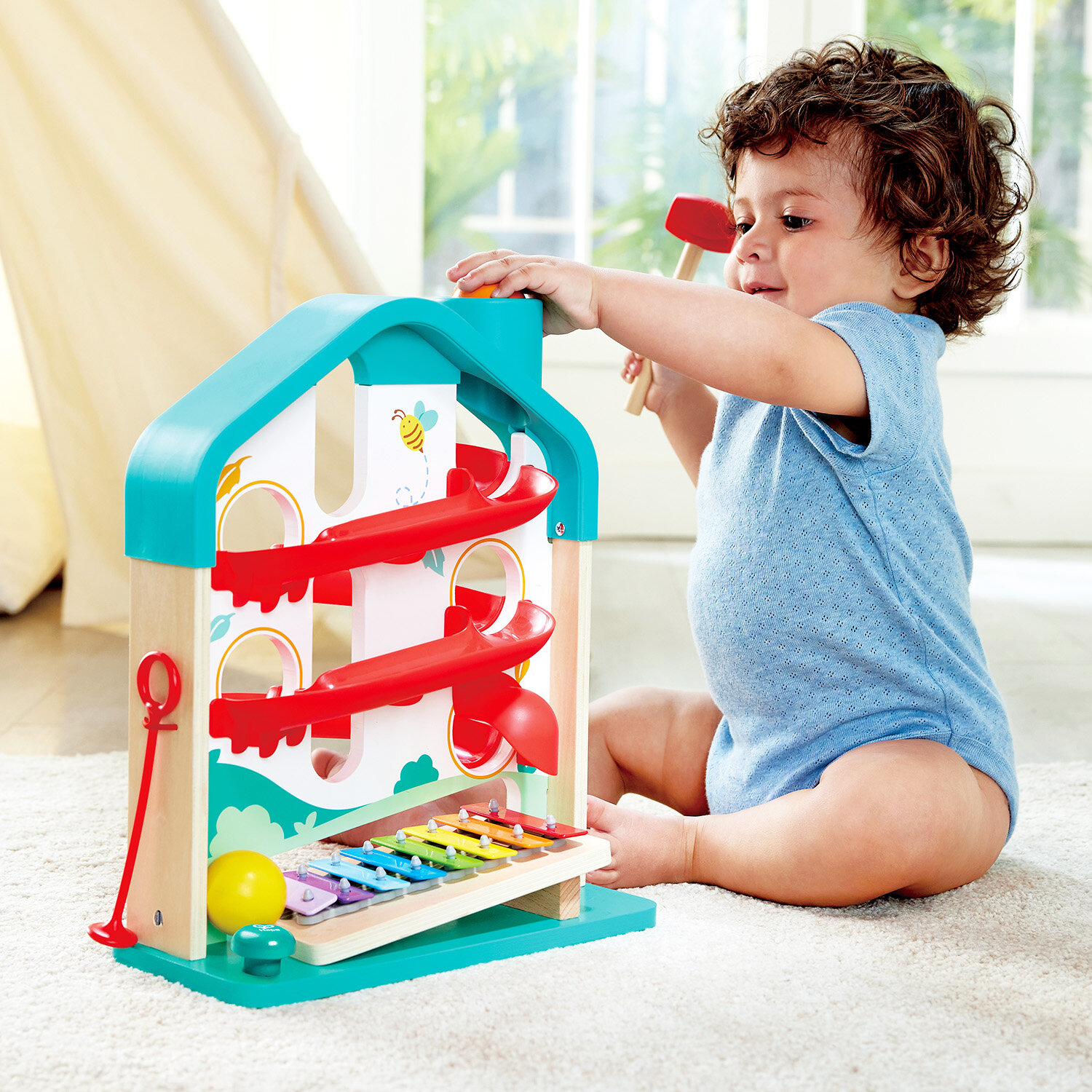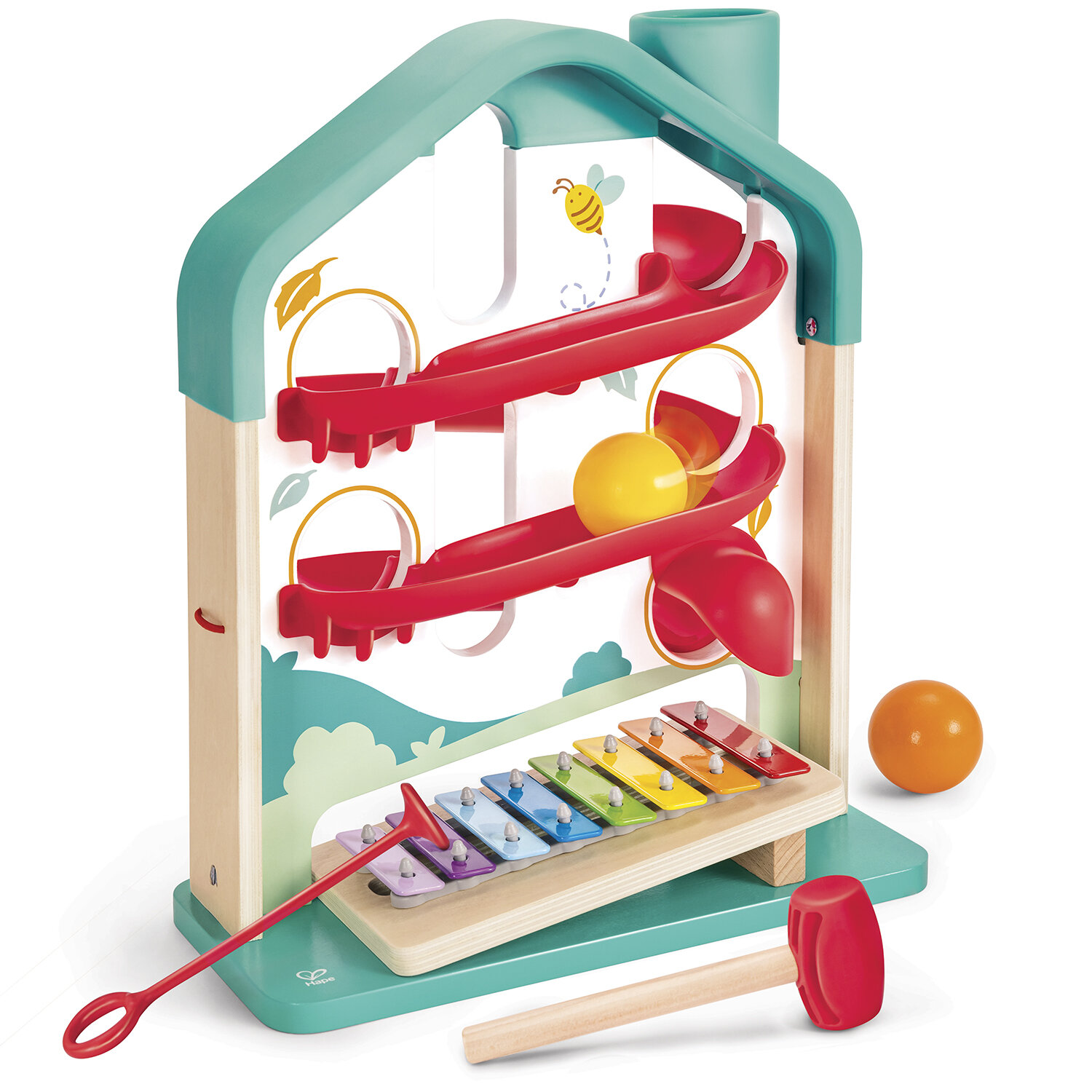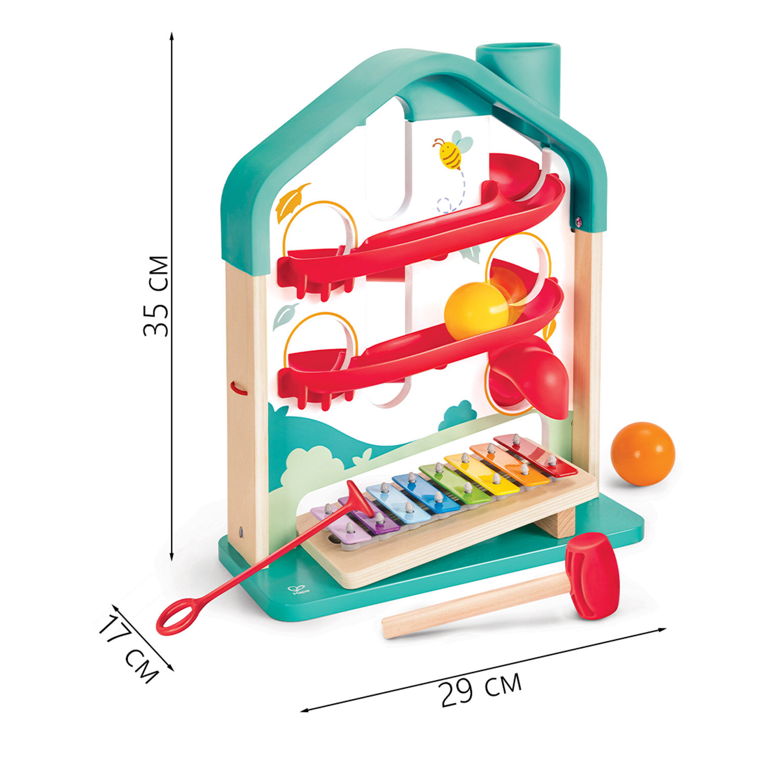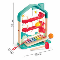 | Комплектация | 1 корпус домика, 1 ксилофон, 2 мяча, 1 молоток, 1 пластиковая палочка. |