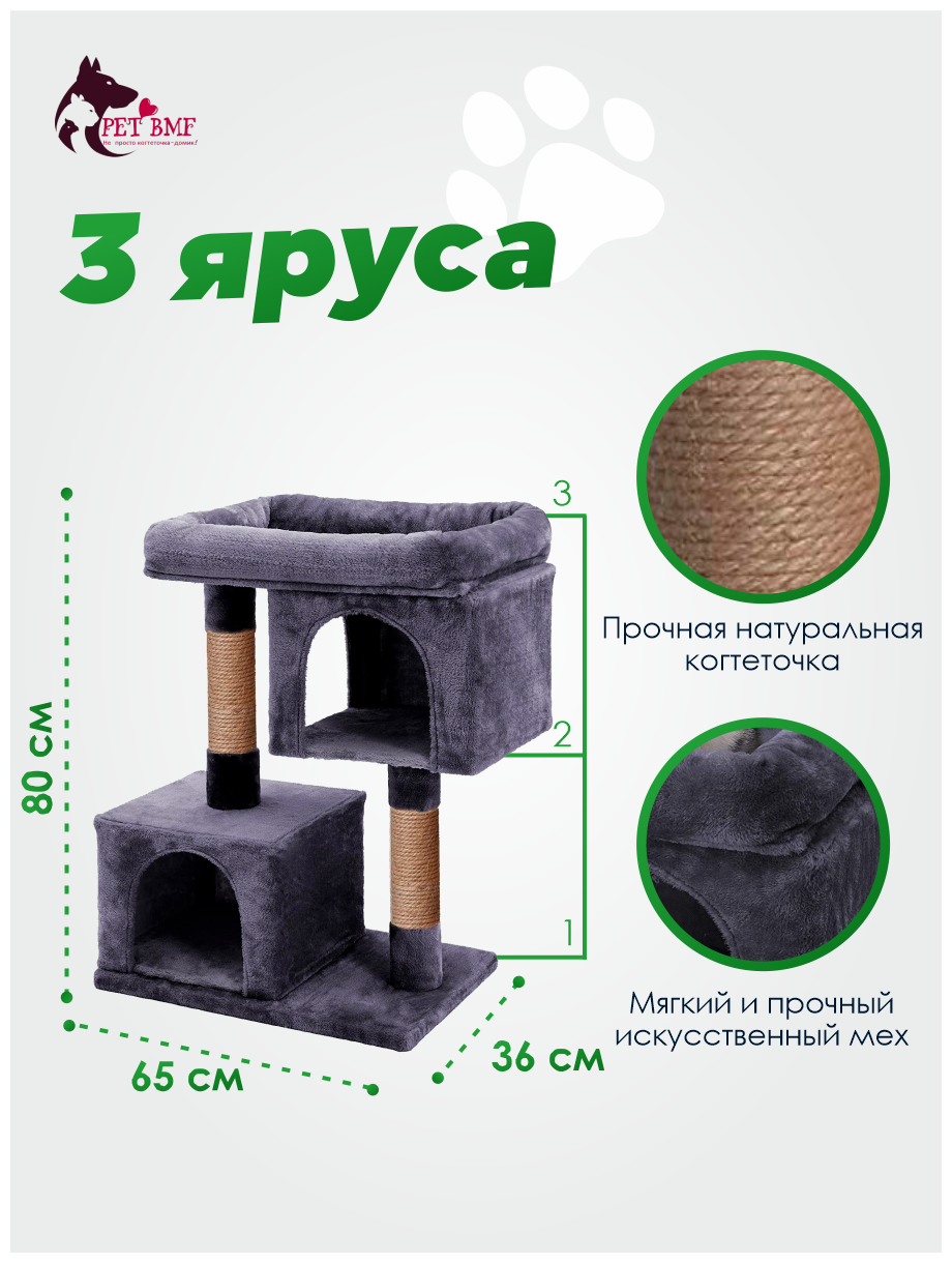 Размеры игрового комплекса для кошек(ДхГхВ): 65 х 36 х 80 см