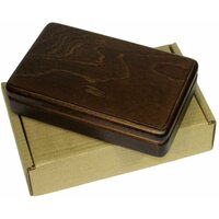 Комплект костей для игры в домино с черными точками и шариком для перемешивания на каждой единице в полированной шкатулке из массива березы, тонированной под орех.