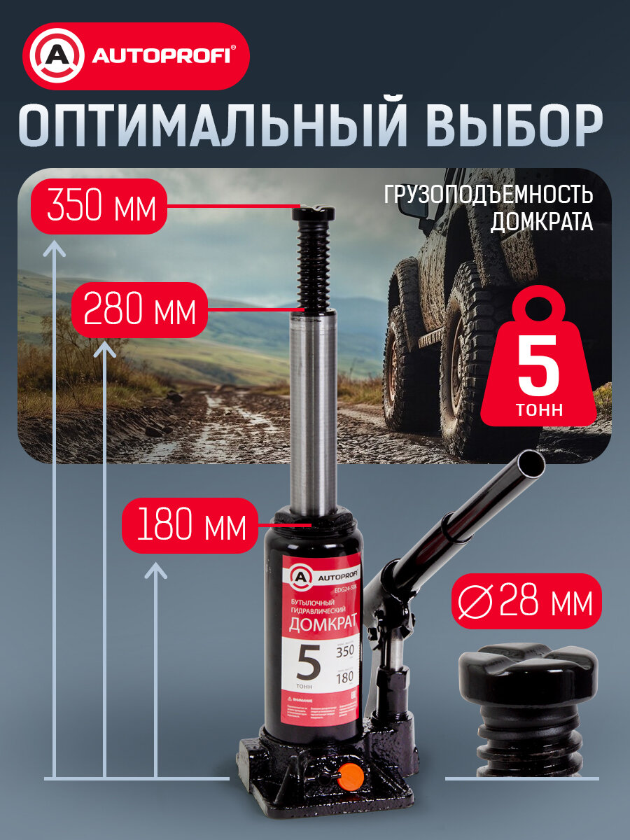 Домкрат AUTOPROFI, бутылочный, гидравлический, грузоподъёмность 5т, черный: сравнение цен, характеристики, фото, актуальное наличие и цены.