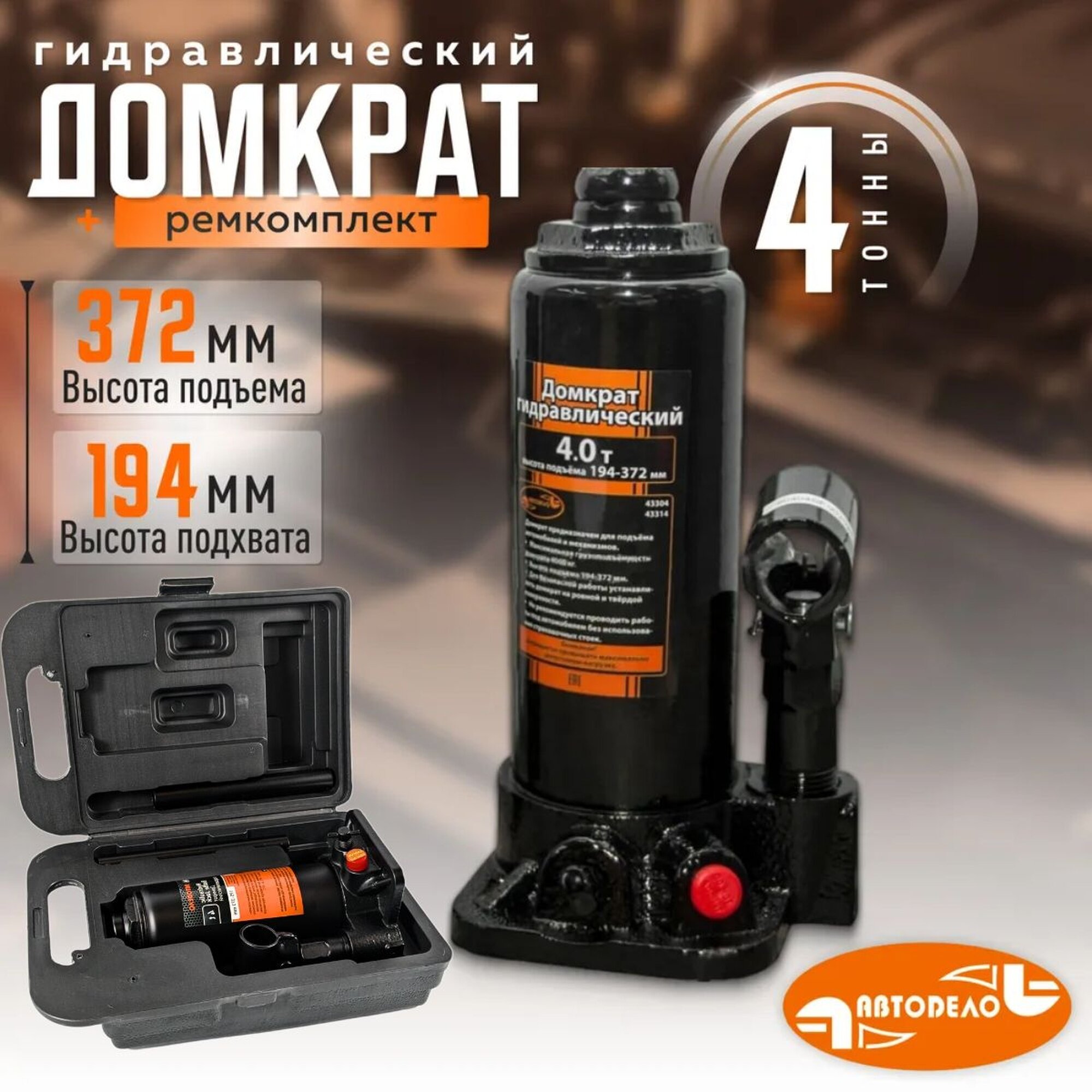 Домкрат автомобильный гидравлический бутылочный 4 тонны, 194-372 мм, кейс, ремкомплект, «Автодело» 43314: сравнение цен, характеристики, фото, актуальное наличие и цены.