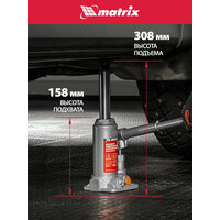 Купить Домкрат автомобильный Matrix 2т, 158-308 мм, защита от перегрузки, гидравлический бутылочный, 50760 с доставкой по всей России.