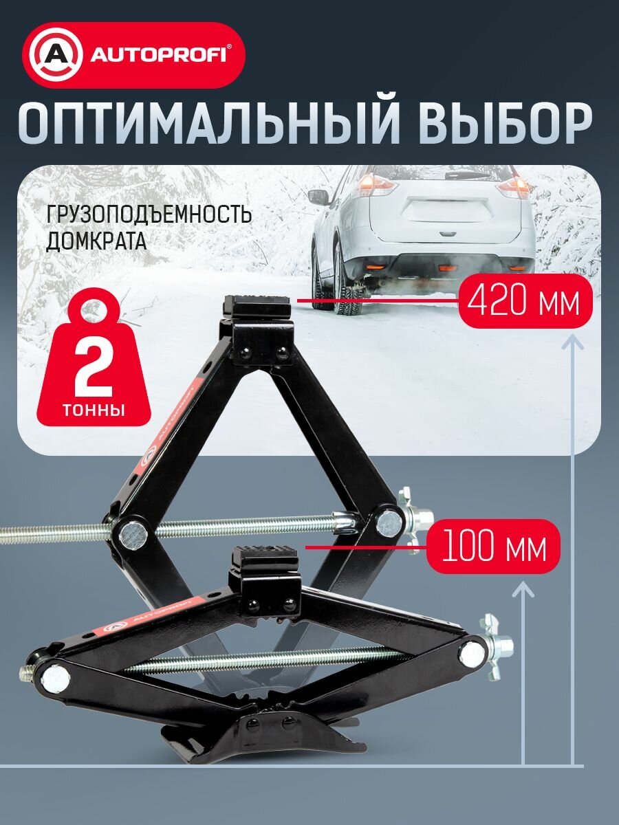Купить Домкрат автомобильный ромбический, AUTOPROFI, 2 тонны, высота подъема 100 — 420 мм. с доставкой по всей России.