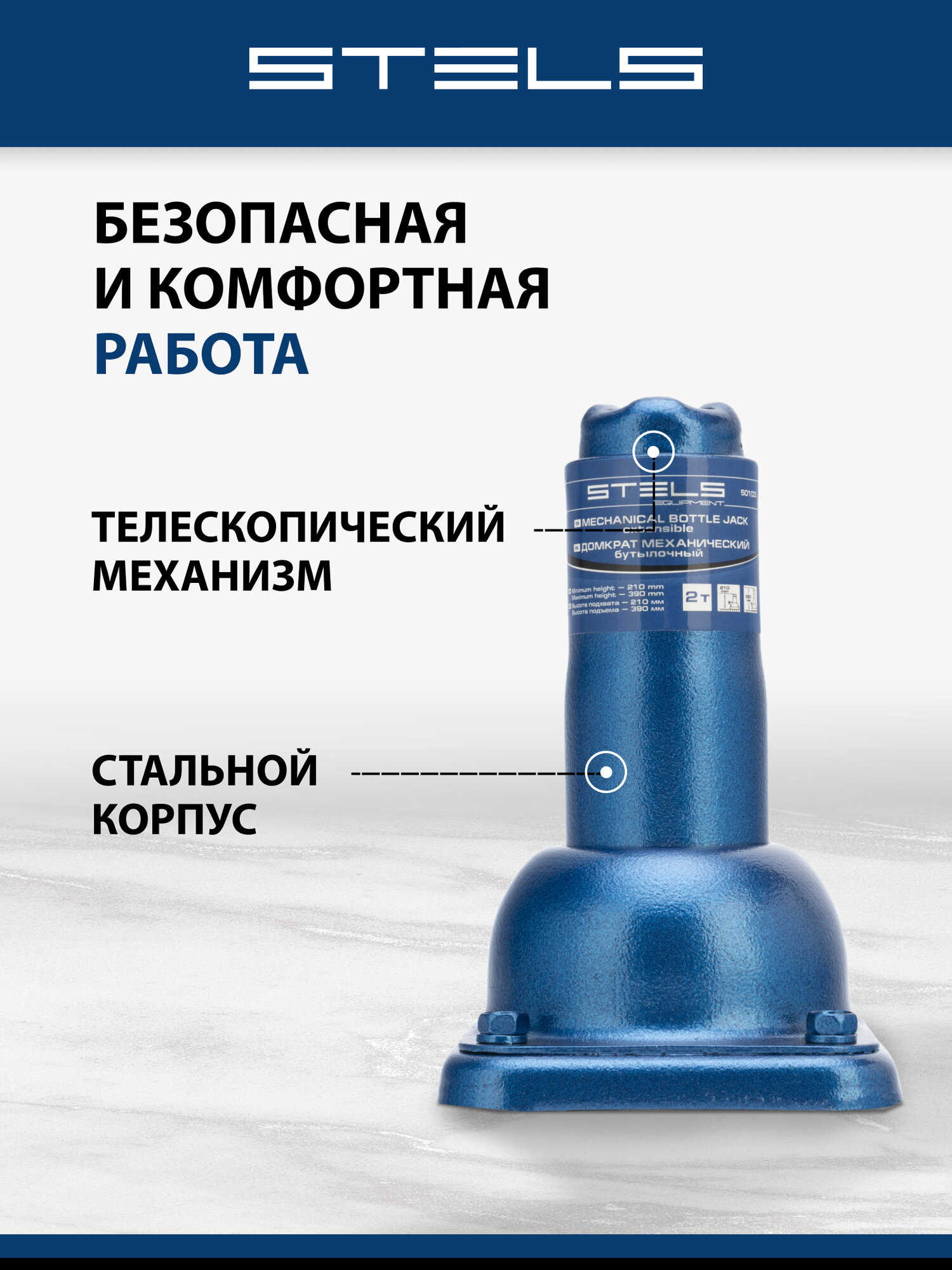 Домкрат автомобильный Stels 2т, 270-485 мм, механический бутылочный, 50105: сравнение цен, характеристики, фото, актуальное наличие и цены.