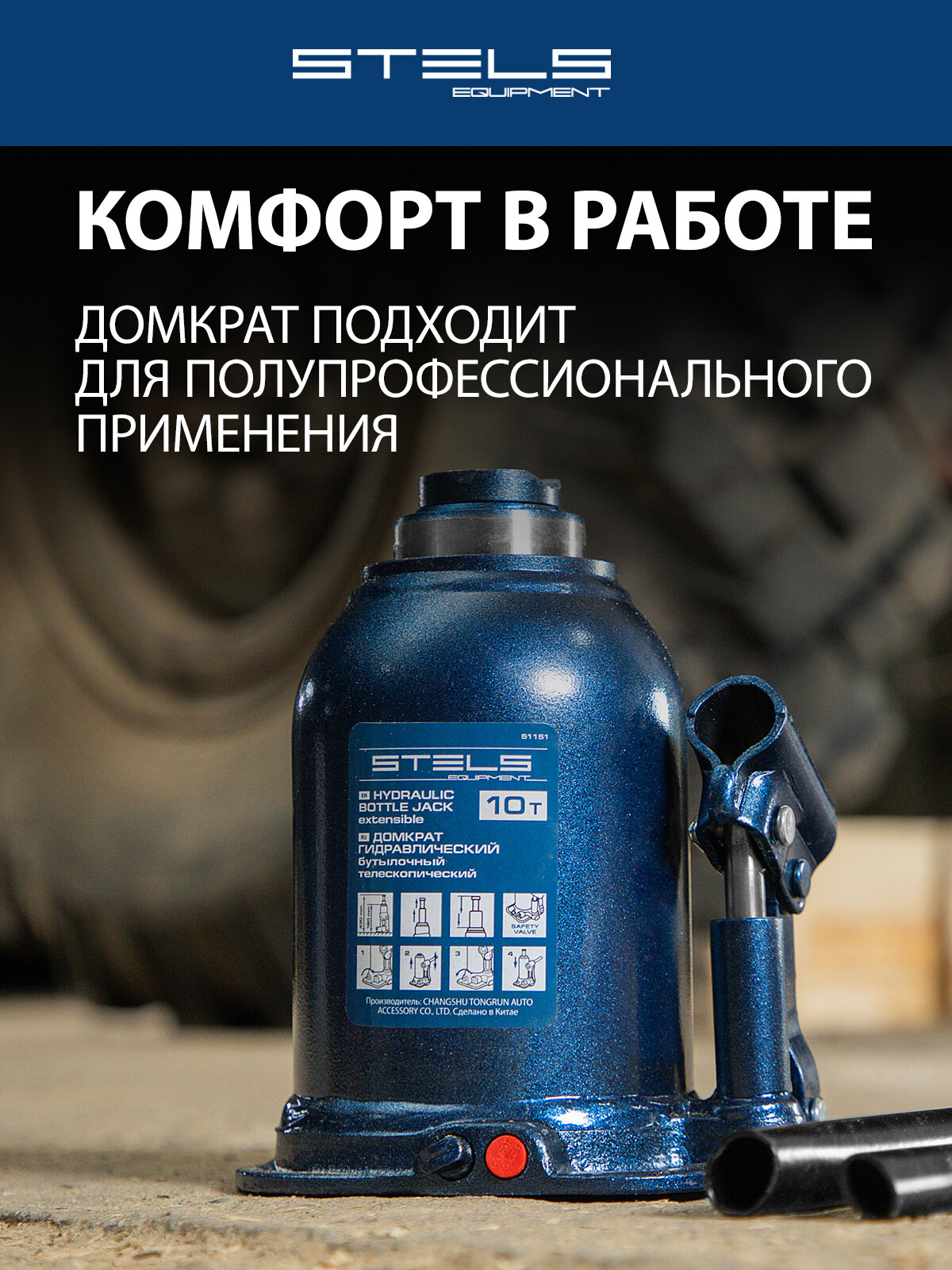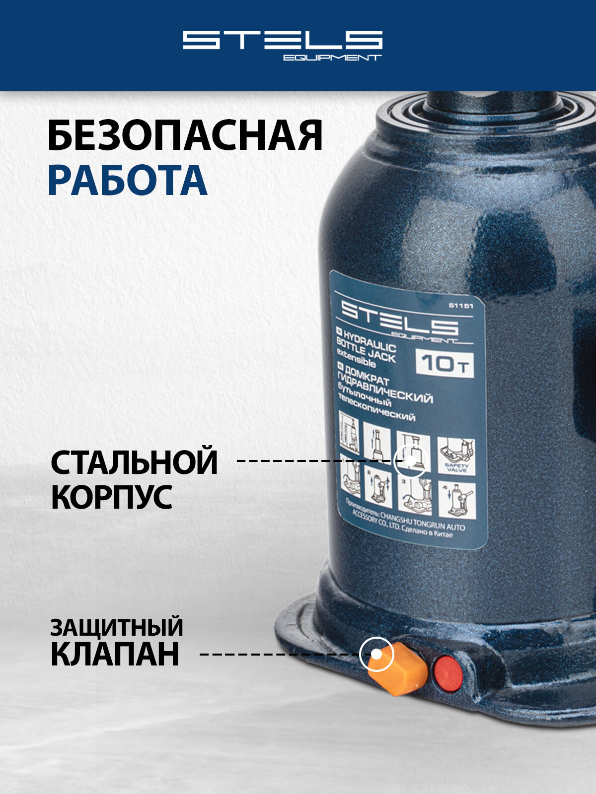 Домкрат автомобильный телескопический Stels 10т, 180-430 мм, защита от перегрузки, гидравлический бутылочный, 51151: сравнение цен, характеристики, фото, актуальное наличие и цены.