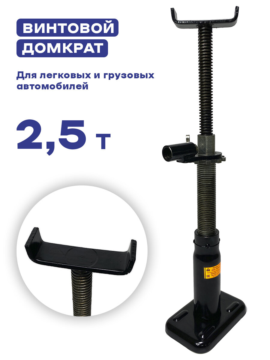Автомобильный домкрат винтовой — удобный инструмент для подъема машин, рассчитан на грузоподъемность 2,5 тонны. Качественный стальной винтовой домкрат для подъема легкового автомобиля, кроссовера и внедорожника с клиренсом (минимальным подхватом/дорожным просветом) от 21см!