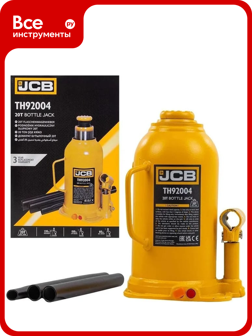 Купить Домкрат бутылочный JCB 20 т с клапаном JCB-TH92004(58020) с доставкой по всей России. Домкрат бутылочный JCB 20 т с клапаном JCB-TH92004(58020): сравнение цен, характеристики, фото, актуальное наличие и цены.