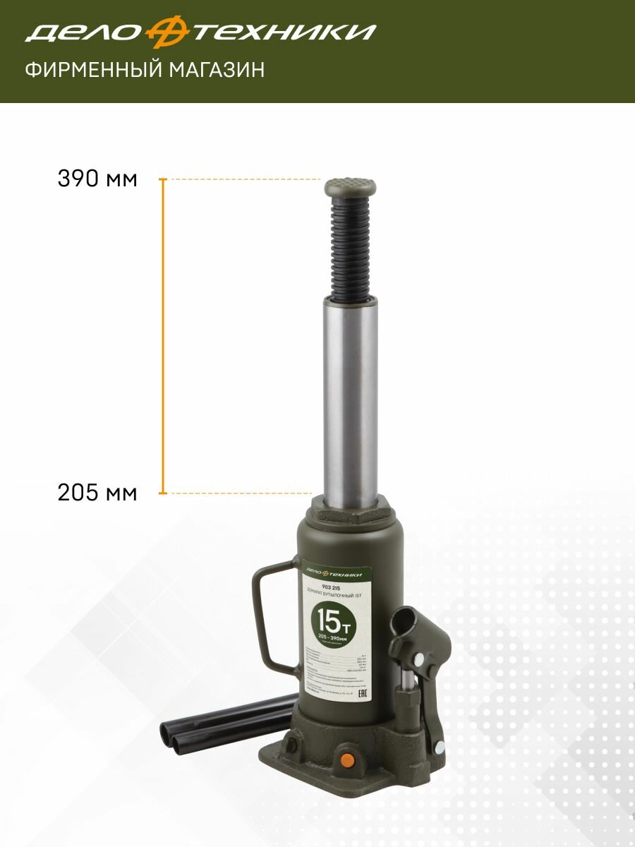 Домкрат Дело Техники гидравлический бутылочный 15 тонн, 205 — 390мм, 903215: сравнение цен, характеристики, фото, актуальное наличие и цены.