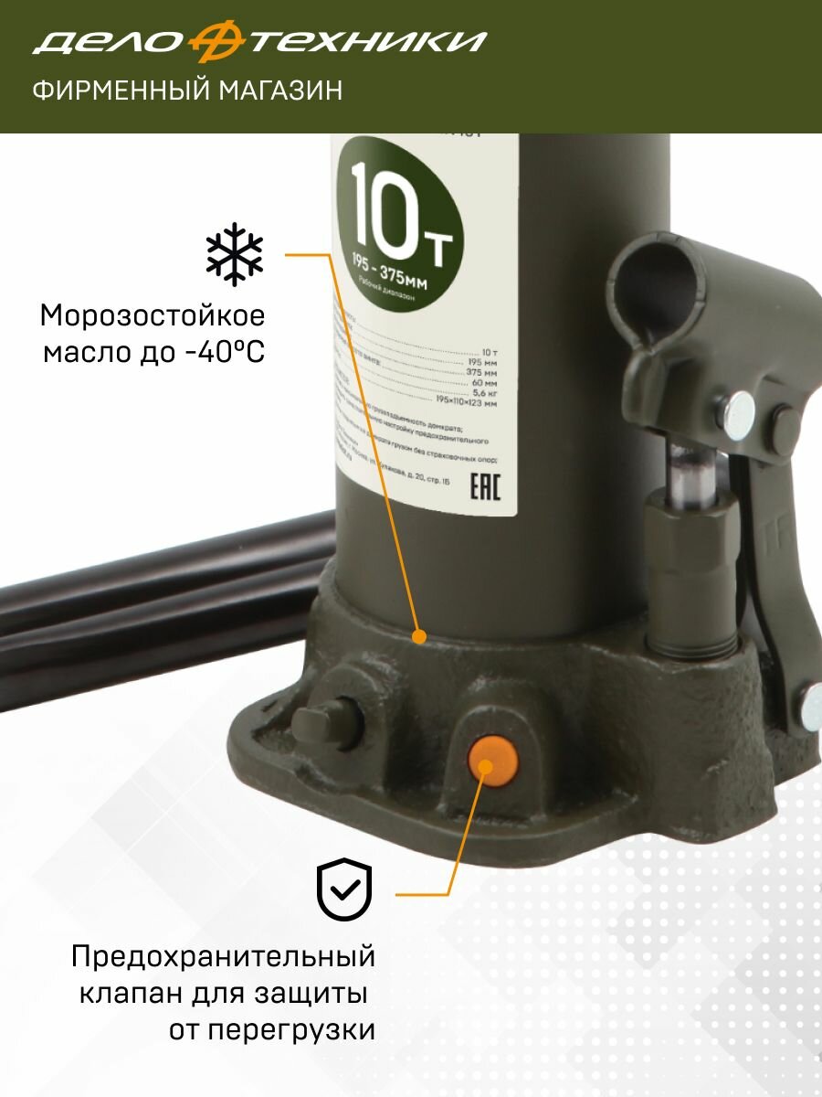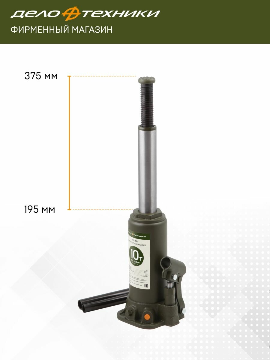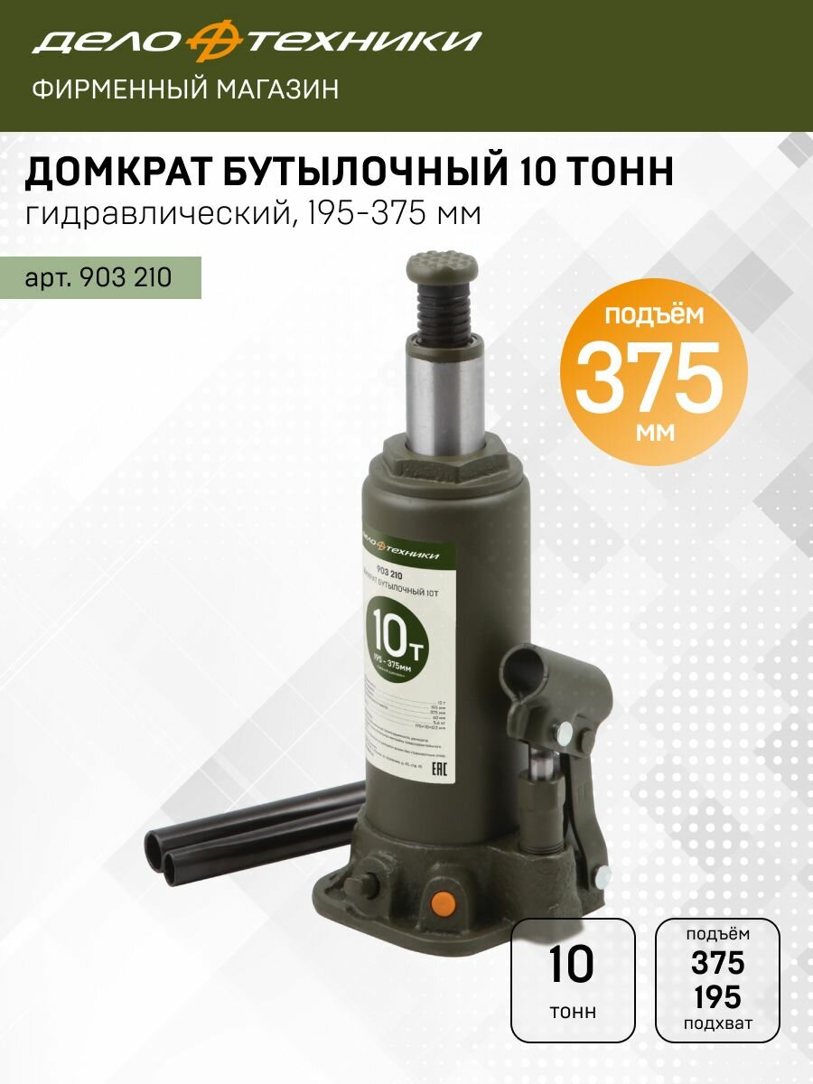Домкрат Дело Техники гидравлический бутылочный 10 тонн, 195 — 375мм, 903210: сравнение цен, характеристики, фото, актуальное наличие и цены.
