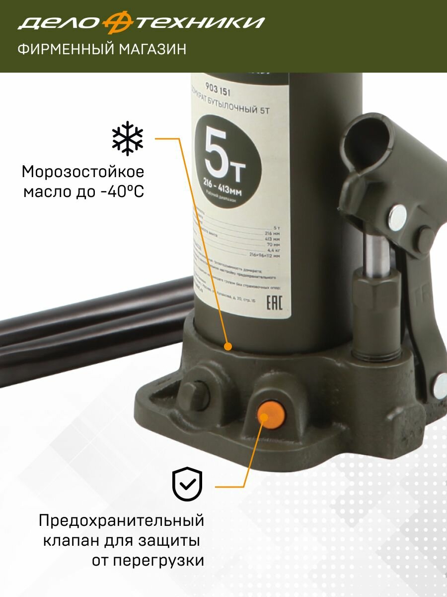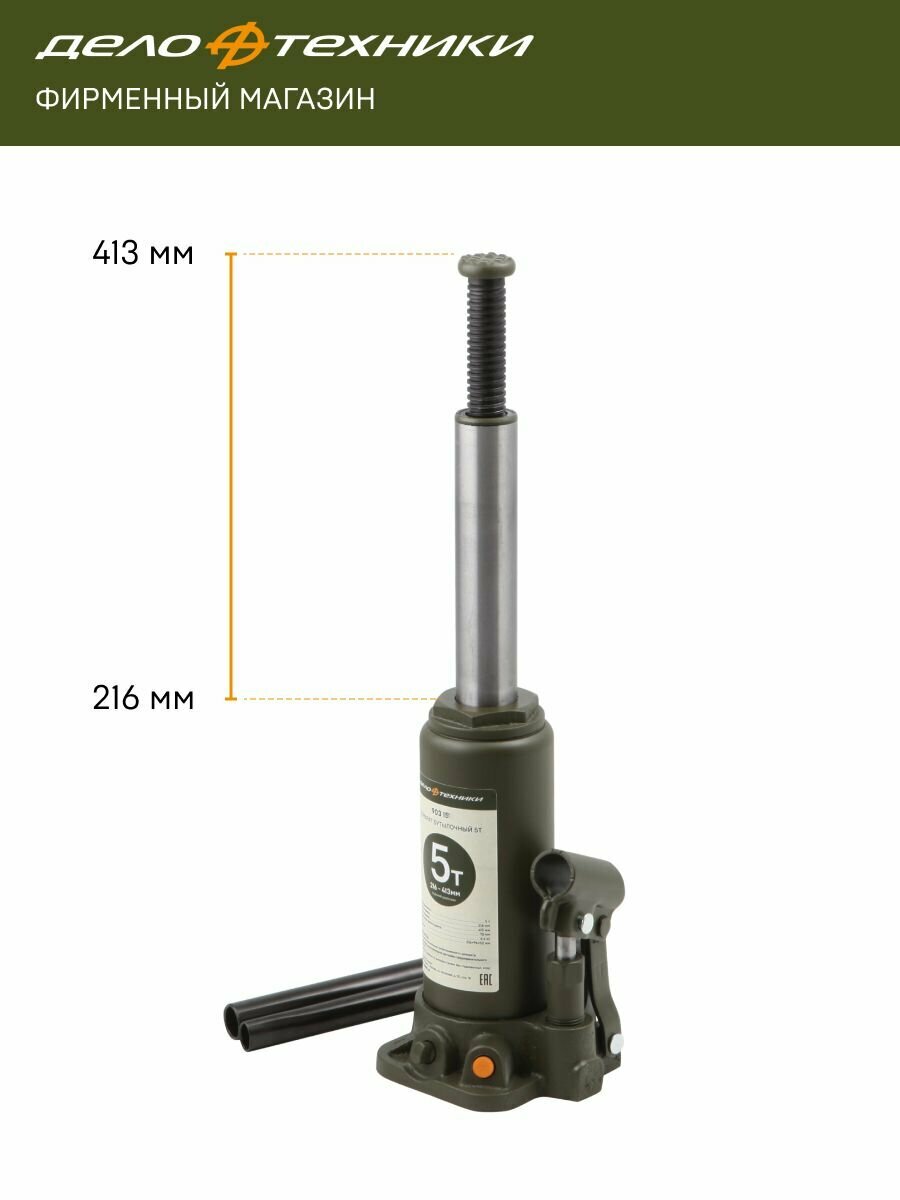 Домкрат Дело Техники гидравлический бутылочный 5 тонн, 216 — 413мм, в кейсе, 903151: сравнение цен, характеристики, фото, актуальное наличие и цены.