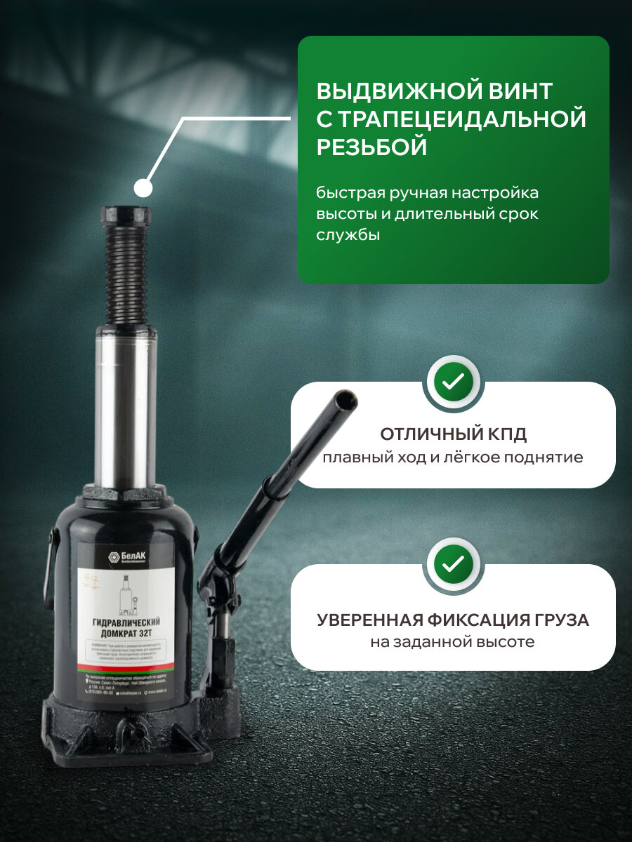 Домкрат гидравлический бутылочный 32т, домкрат автомобильный, 235мм-440мм, БелАК: сравнение цен, характеристики, фото, актуальное наличие и цены.