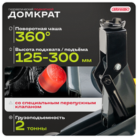 Характеристики: Грузоподъёмность: 2 т. Максимальная высота подъёма: 300 мм. Минимальная высота подъёма: 125 мм. Вес нетто: 6,5 кг. В комплекте - кейс для хранения.