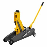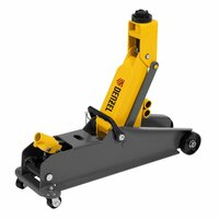 Гидравлический подкатной домкрат Denzel 51261 с фиксатором имеет высоту подхвата 150 мм и предназначен для плавного подъема грузов массой до 3 т (в том числе автомобилей класса SUV на высоту до 532 мм. Страховочный штифт позволяет фиксировать подъемный рычаг на высоте 410 и 450 мм для безопасной работы. Домкрат пригодится владельцам легковых автомобилей со стандартным клиренсом.