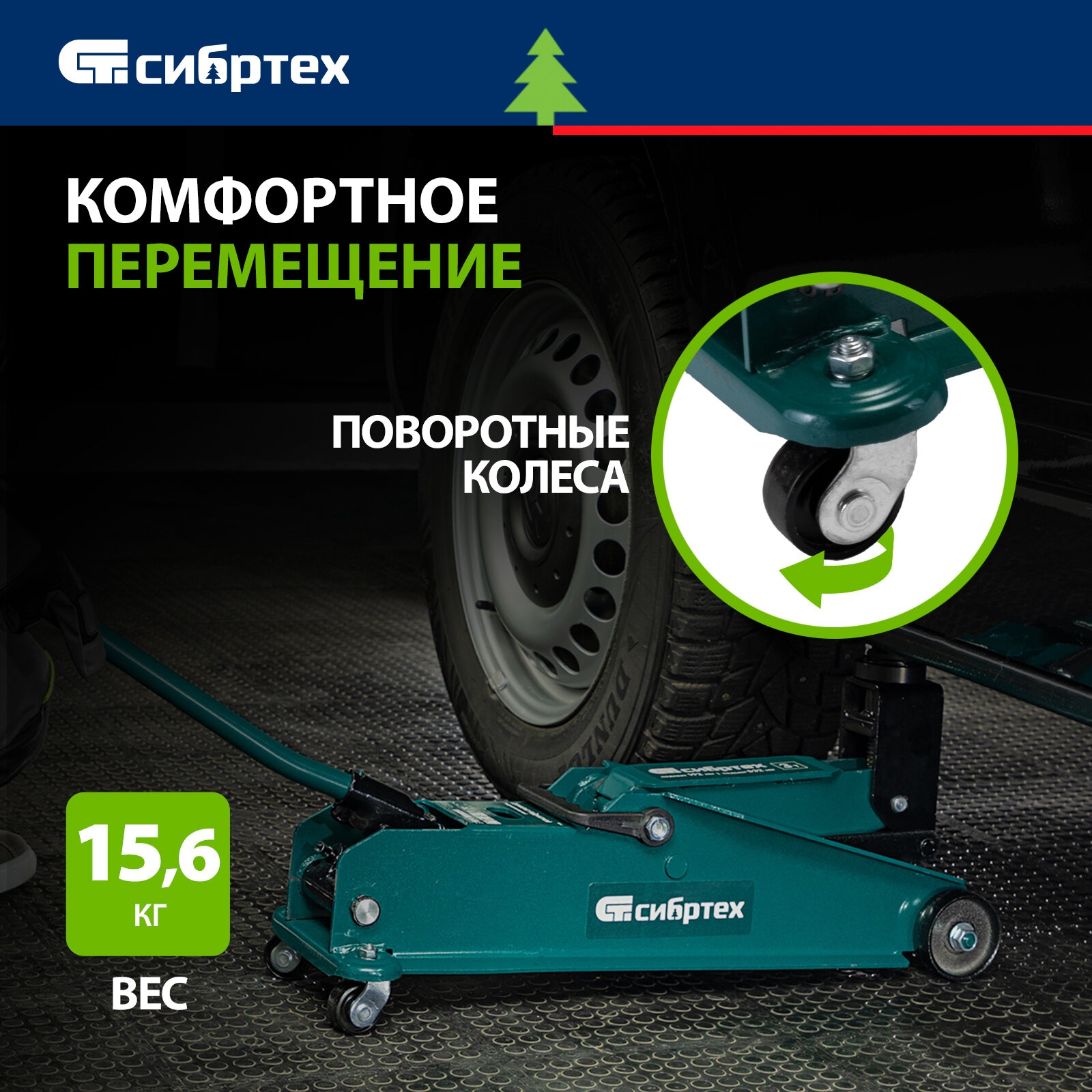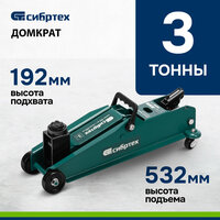 Гидравлический подкатной домкрат Сибртех 50841 с высотой подхвата 192 мм, предназначен для подъема грузов массой до 3 т на высоту до 532 мм, подходит для автомобилей со стандартным клиренсом и SUV. Компактный домкрат подходит для самостоятельного использования автовладельцами.